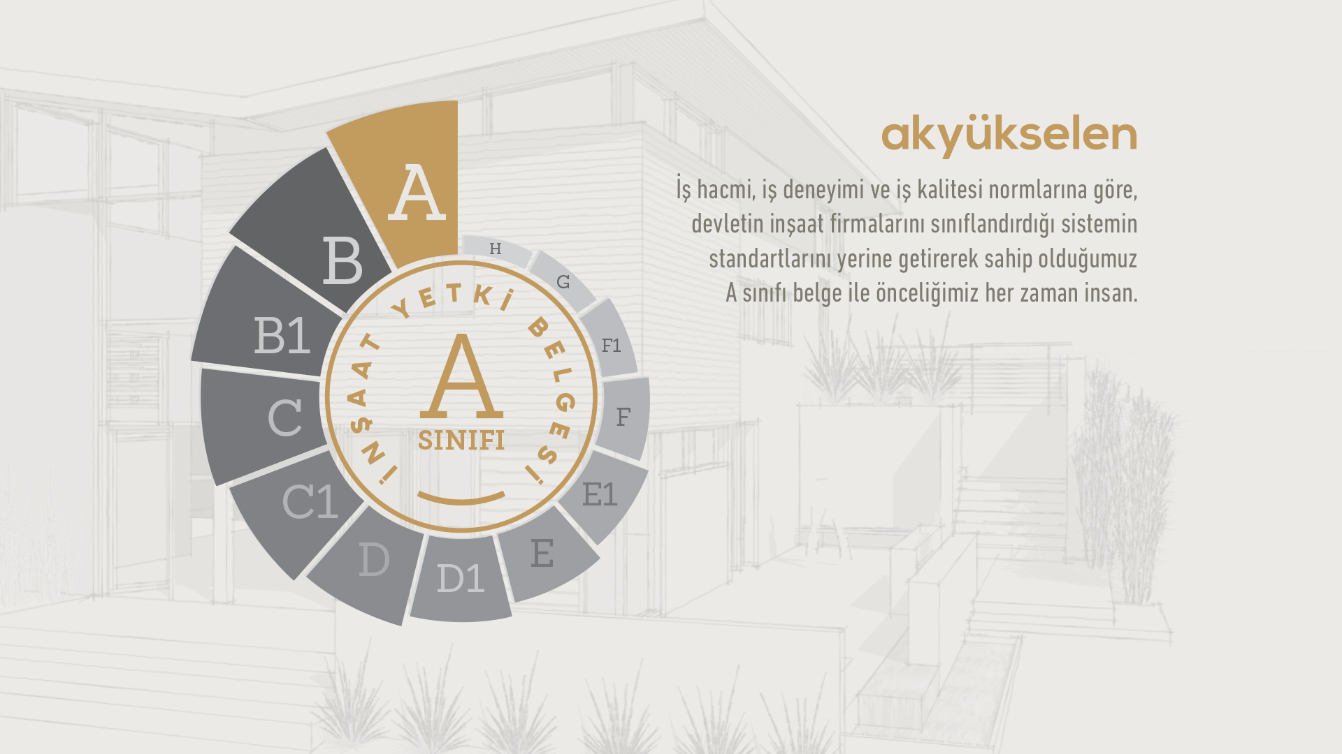 Akyükselen İnşaat dünden bugüne sayısız projeleri ile; profesyonel satış ve saha ekibi, şeffaflık ilkesi, kalite yönetimi ve sorumluluk bilinci kapsamında, toplumun değerlerini göz önünde bulundurarak yaşanabilir alanlar inşa etmektedir.