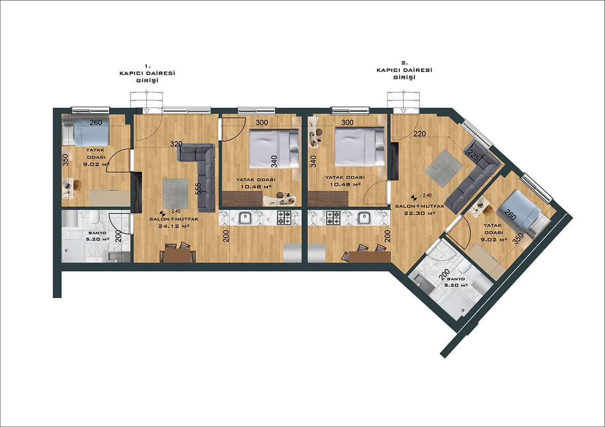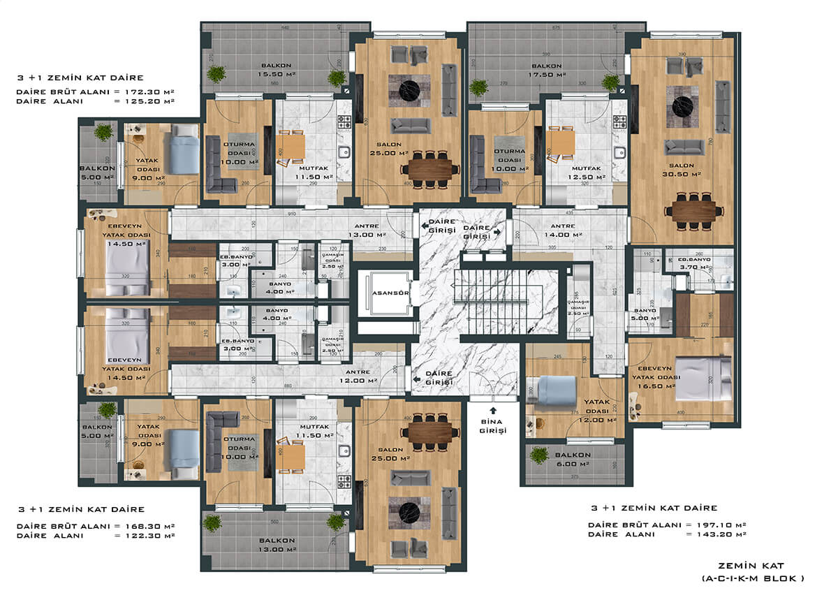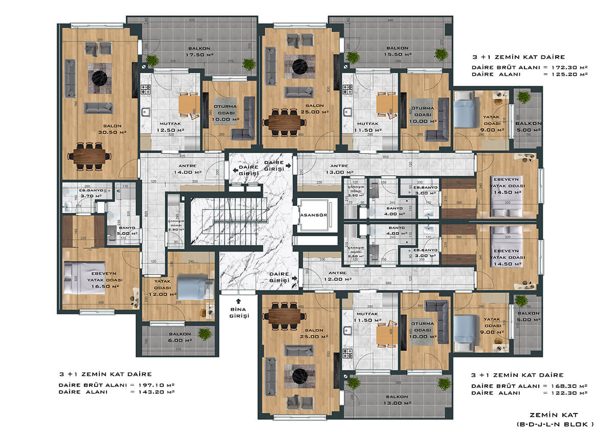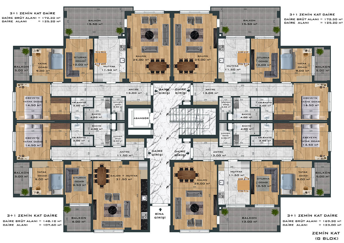 Toplamda 264 daireden oluşan proje, 3+1 ve 4+1 daire seçenekleri ile ferah ve samimi bir yaşam alanı yaratıyor. Bunun yanında bünyesinde 1’i fırın olmak üzere toplam 8 adet ticari alanı da barındıran proje size eksiksiz bir yaşam sunuyor.